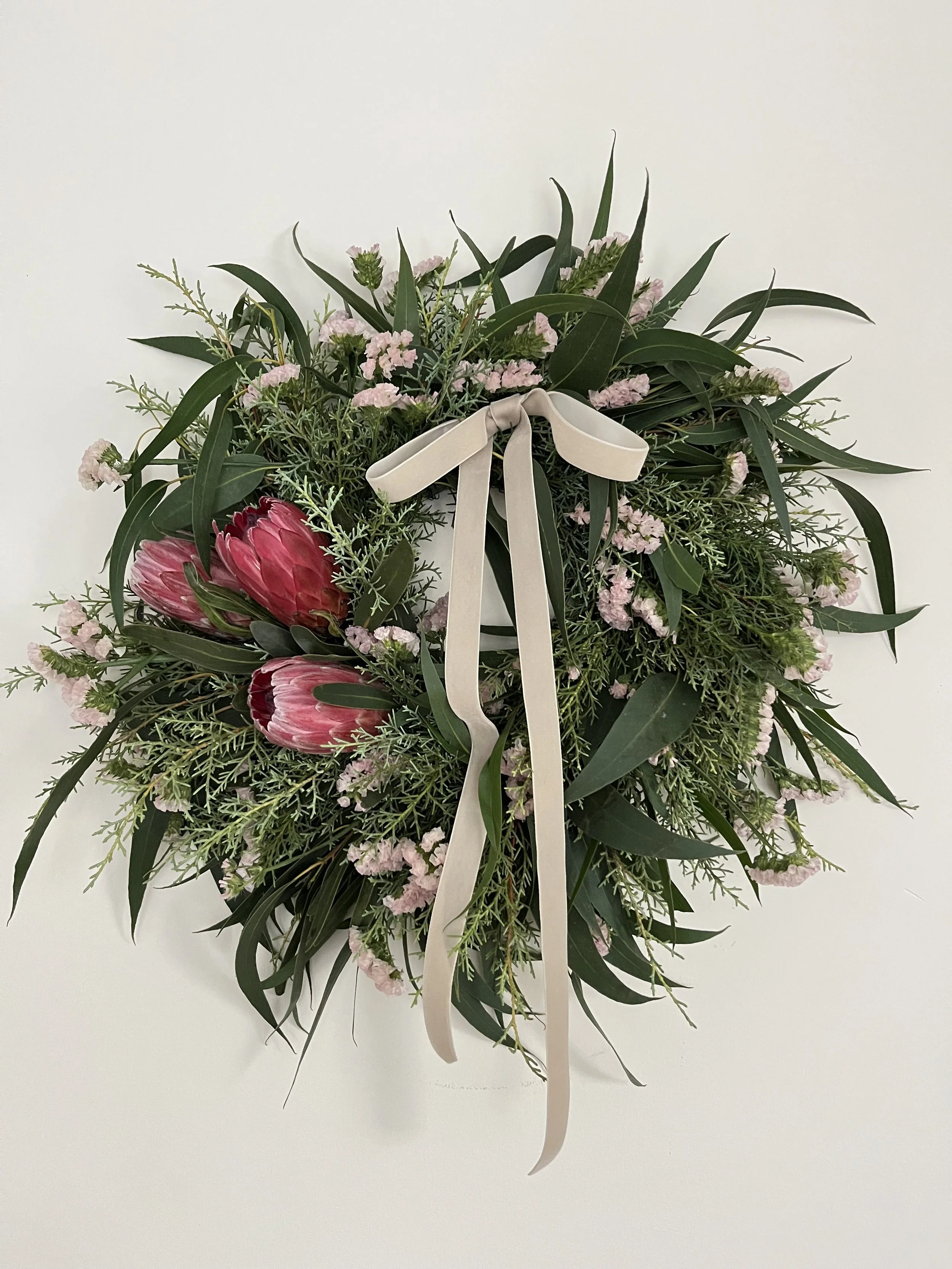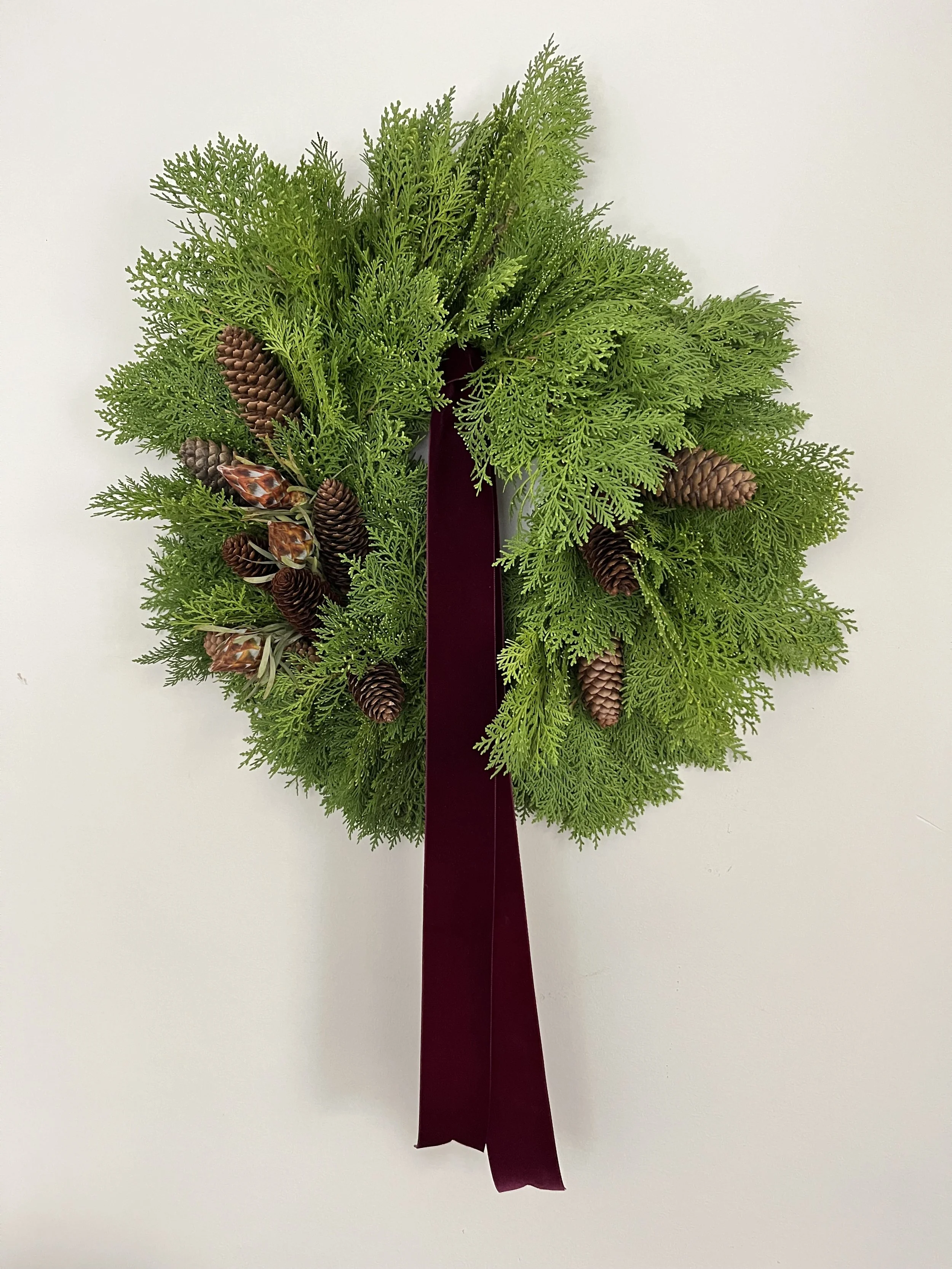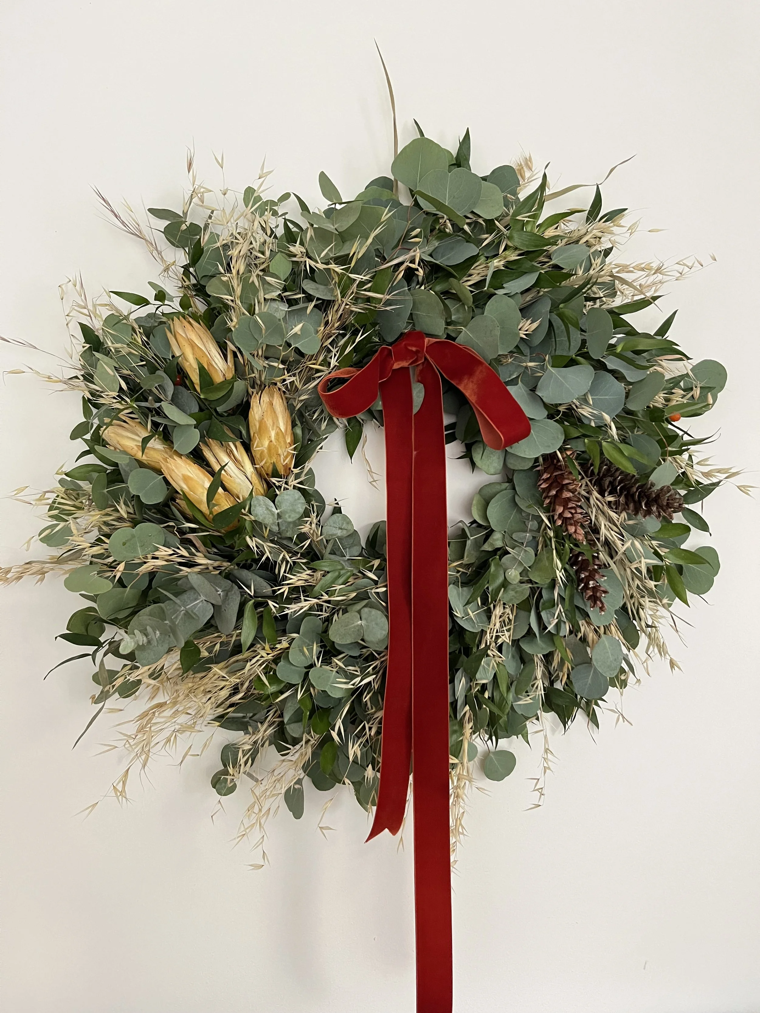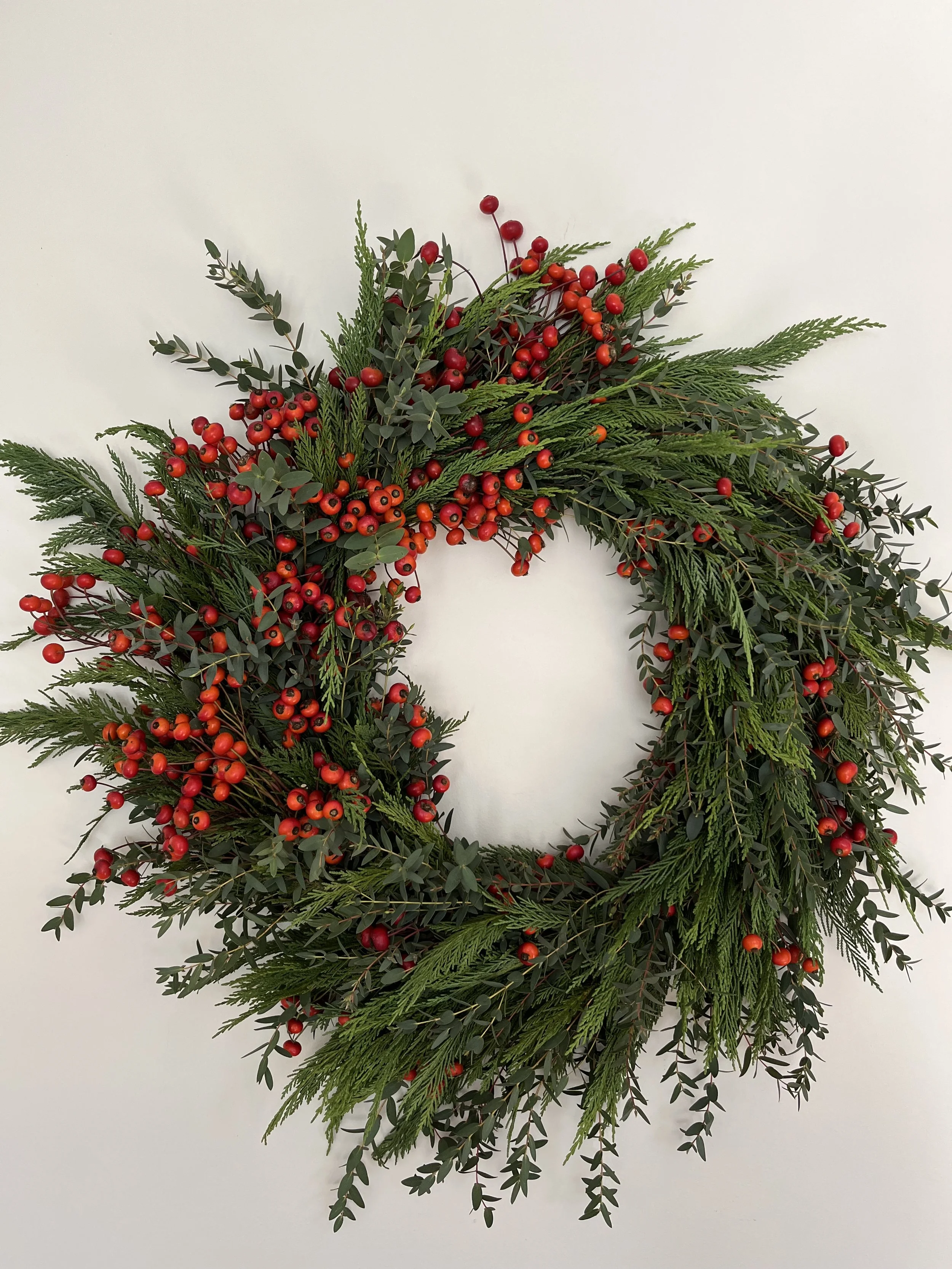 Each wreath is handmade and one of a kind with variations based on seasonal availability. Delivery is available in northern Westchester, New Canaan & Greenwich. Please contact info@pennykarvounisflowers.com to inquire further.